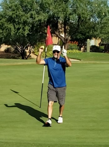 Quoting him, “I did use a 7 iron and the hole distance was 173 yards. My playing partners were Gary Christensen, Steve Harris, and Larry Ganje. The pin placement was a white flag. My ball landed about 10 feet shy of the hole and bounced one time, straight into the hole. I did hear it hit the pin when it went in. This was my first hole in one. I’ve attached a picture taken right after I retrieved my ball”.