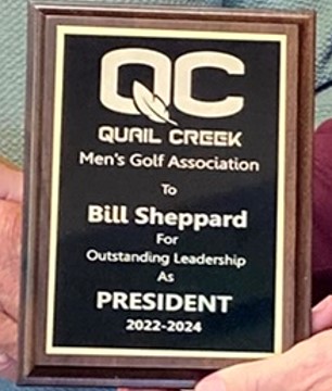 As shown in the above picture, on behalf of the QCMGA Board, Bob presented Bill with a plaque thanking him for outstanding leadership and service to QCMGA during Bill’s 2022 to 2024 timeperiod as QCMGA President.